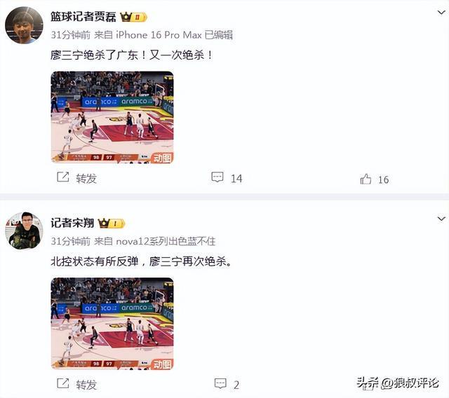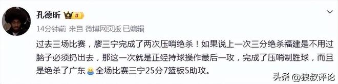 广东遭绝杀引热议!廖三宁3战2绝杀引媒体人狂刷屏“值得全明星”