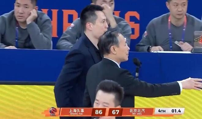 川队半场12分4板2助2断,杰曼11分3板4助,全队除了范子铭外人人都有得分,北京凭借节末一波12-3,单节轰下33分,半场北京46-40反超上海,相当不可思议,许利民自己也看乐了。