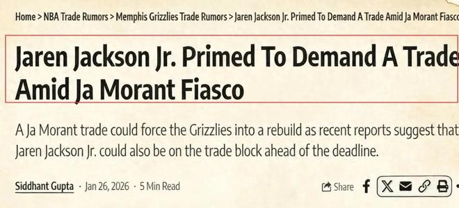 场均19+6!曝灰熊内线核心或提交易申请,遭湖人、勇士等多队哄抢