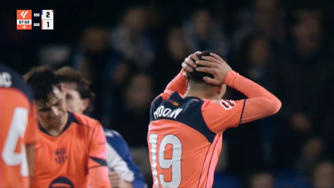 莱万随即贡献一记精彩的头球,但是被雷米罗再次神奇扑出!第70分钟,亚马尔传中到后点,插上的拉什福德头球破门,1:1!久攻之下的巴萨终于扳平比分。但是仅仅一分钟后,皇家社会发动快速反击,皇家社会禁区连续形成威胁,贡萨洛格德斯抽射空门得手,1:2!落后的巴塞罗那短时间后防一片混乱,不断被皇家社会围攻!