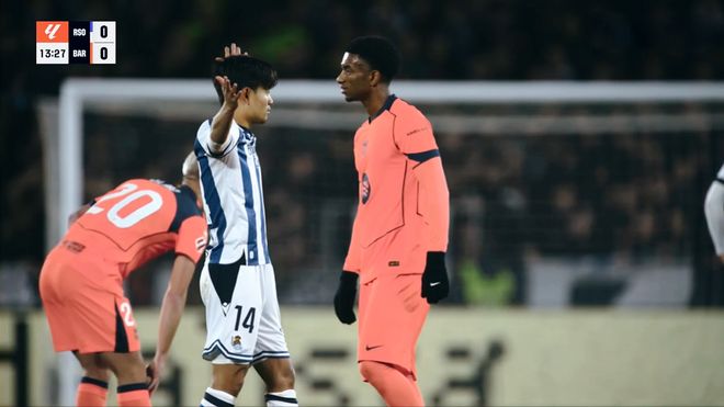 佩德里屡遭凶狠的犯规,但是裁判始终无动于衷。孔德门前头球,重重击中横梁弹出!第88分钟,索莱尔飞铲佩德里,裁判经过视频回放鉴定后,直接红牌罚下。经过长达9分钟的补时,最终10人的皇家社会守住了胜局。