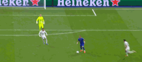 第40分钟,阿克利乌什卧射,库尔图瓦将球扑出