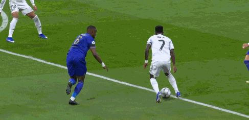 第68分钟,回防的跑车,姆巴佩高速奔袭进行防守