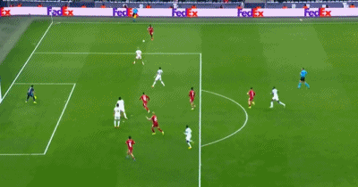 第40分钟,弗林蓬右路突破传中,萨拉赫抢点脚后跟巧妙打门,擦着横梁上沿稍稍高出。
