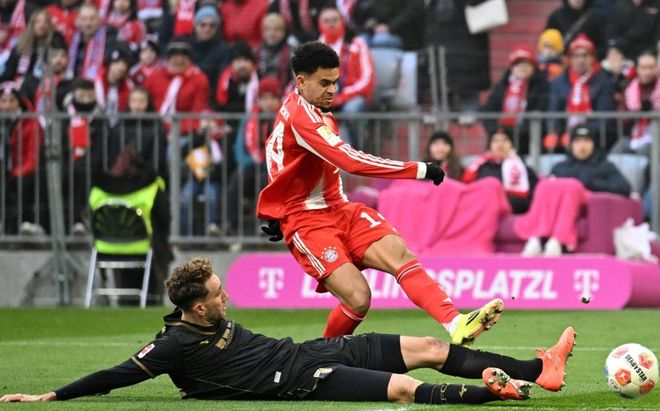 比赛第23分钟,拜仁取得进球!奥利塞开出角球,伊藤洋辉头球攻门,球进了!2分钟后,迪亚斯在禁区左侧起球传中,卡尔后点包抄凌空射门,踢飞了。随后,迪亚斯在禁区左侧小角度射门被封堵出去。