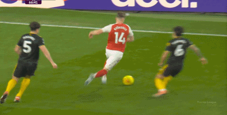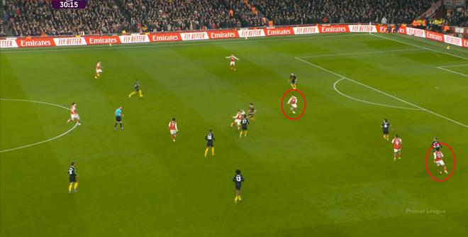 你说这有没有效,当然还是有的,比如在阵型拉得更开之后,阿森纳通过边路形成的进攻效果确实提升了半个档次: