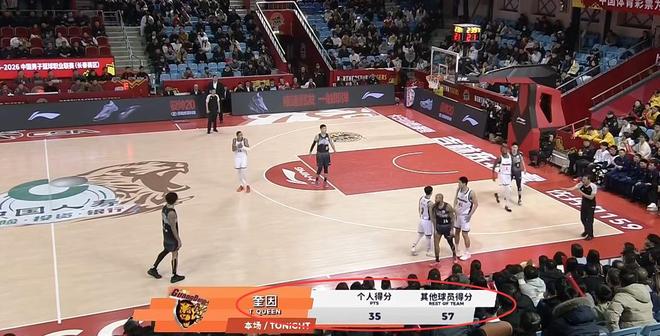 第二节双方继续不设防,吉林拉不住奎因,广东防不住威尔逊,接下来广东连续出现2次失误,威尔逊篮下强起,姜伟泽三分抬手就有吉林两度扳平比分,关键时刻奎因强怼赵率舟怒凿2+1,低迷了半节的萨姆纳随后也单挑贾昊制造2+1。