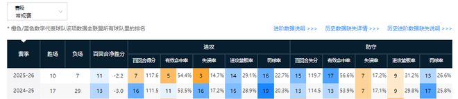 另外,上海男篮上赛季常规赛的百回合失分、得分、净胜分均是联盟第六水平。本赛季17轮后,他们的百回合失分、净胜分已高于联盟第一,百回合得分排在联赛第三。