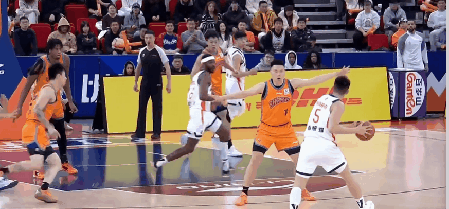易边再战,上海男篮有不少个人的精彩发挥:王哲林展现梦幻脚步,古德温灵机一动的造3分犯规。