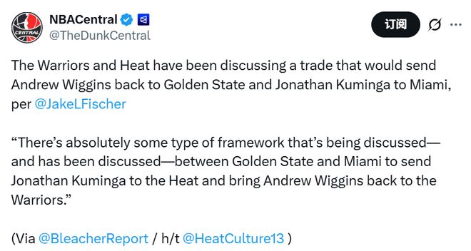 此前,名记Stein曾报道,勇士有意探讨将库明加交易至热火队,从而换回安德鲁-维金斯的可能性。如今,他们已经付诸行动,与热火展开谈判。自库明加在1月16日主动提出交易申请后,勇士队“毫无疑问”会继续推进涉及这名球员的各类交易谈判。就算巴特勒因伤赛季报销,库明加交易可能性有所下降,但并没有被完全排除。毕竟,库明加本人的意愿并未改变,他还是想离开勇士。