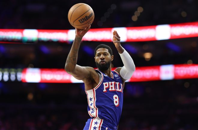 大帝半场24分探花准三双,保罗乔治32+5+5+9记三分,76人大胜雄鹿