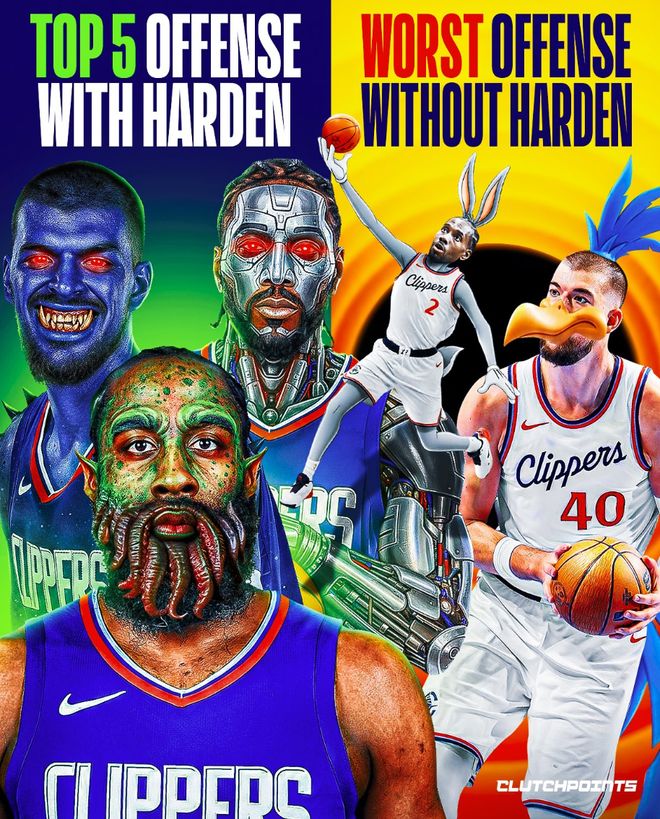美媒Clutchpoints写道:36岁的哈登依旧是篮球界最顶尖的后卫之一,本赛季的哈登场均25.6分8.1助攻4.9篮板,当他在场时快船进攻效率达到117.9排在联盟第六,而当哈登下场时快船进攻效率下滑到103.1联盟倒数之一,哈登在场/不在场进攻效率差值高达14.8。