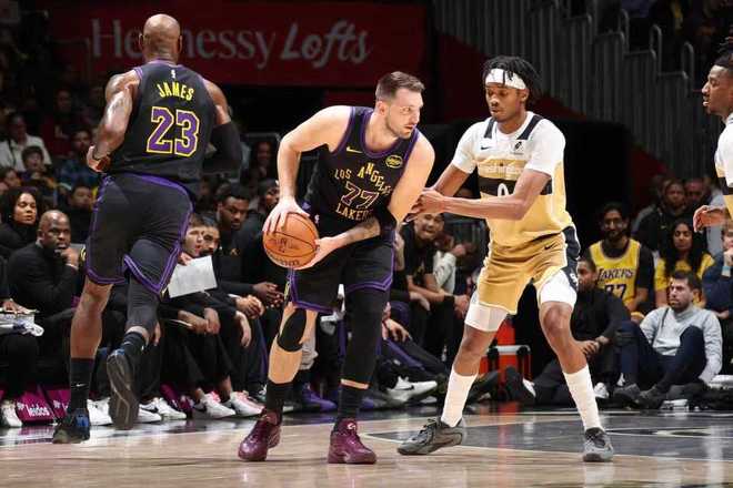 中场休息回来,萨尔补篮得分,艾顿暴扣回敬,乔治三分追分,拉拉维亚补篮与詹姆斯空接背扣打停奇才。东契奇中投得分,卡林顿3+1追分,东契奇攻传结合引领一波12-2攻势,湖人已经扩大97-59领先38分优势。奇才连追4分,湖人4罚3中,莱利三分命中,八村垒连得5分。奇才多点开花追分,尤其是乔治连中三分,奇才第三节末段一波14-3缩小差距,三节结束湖人108-84领先奇才。前三节比赛,东契奇37+11+13、艾顿20+9与詹姆斯18分,湖人5人得分上双,奇才4人得分上双。