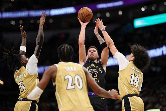 湖人:东契奇6记三分37分11篮板13助攻3抢断,詹姆斯20分6助攻,艾顿28分13篮板3盖帽,八村垒11分,海斯10分。