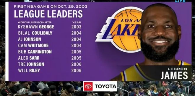 官方给出一组数据,奇才队内有8人是在勒布朗首秀后出生,这对于41岁的勒布朗来说就是一种最大的肯定。