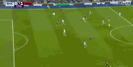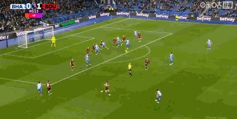 第90分钟,范黑克助攻,科斯图拉斯倒钩绝平,布莱顿1-1