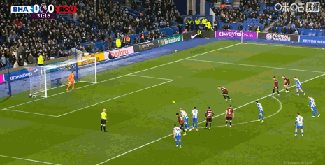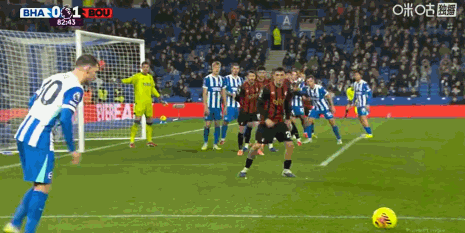 布莱顿1-1伯恩茅斯,科斯图拉斯倒钩绝平,塔韦尼耶点射