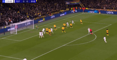 第37分钟,索兰克禁区幸运脚后跟破门,热刺2-0多特