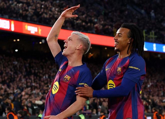 在西甲赛场,巴萨大获全胜,3球横扫皇家奥维耶多。巴萨在这场比赛的上半场踢得比较艰难,面对对手的密集防守很难创造出好机会,迟迟无法取得进球。直到下半场奥尔莫远射破门才打破僵局。这粒进球让巴萨踢得越来越放松,之后接连取得进球。拉菲尼亚单刀破门扩大比分,亚马尔打进了一粒漂亮的侧钩进球,把最终的比分定格为3-0。这场胜利让巴萨以1分的优势,超越皇马,重登榜首位置。