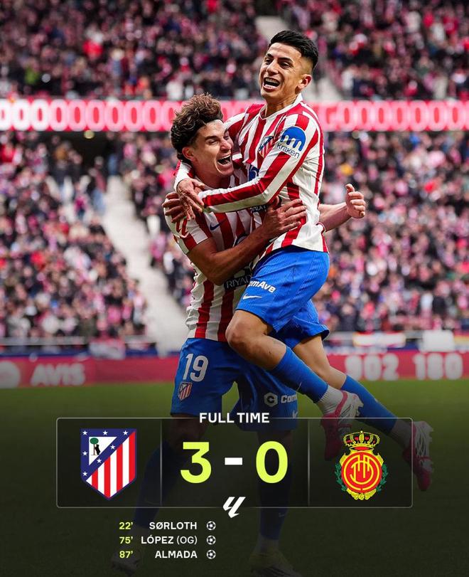另一边,马竞在主场迎战马略卡,西蒙尼的球队3-0干净利落,继续保持争冠压力。