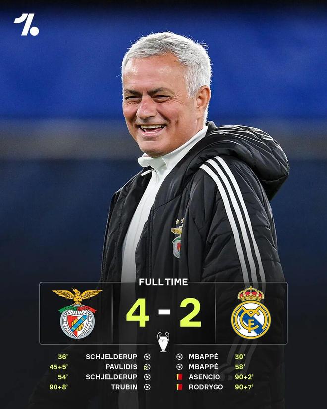 回顾本轮比赛,葡超堪称是最大赢家。葡萄牙体育客场3-2绝杀毕尔巴鄂竞技,成为欧冠前8唯一一支非五大联赛球队。而穆里尼奥带领的本菲卡则靠补时阶段门将特鲁宾的最后一击4-2击败皇马,将净胜球提升至-2,挤掉了同积9分,但净胜球为-3的马赛,最后时刻挺进了16强附加赛。
