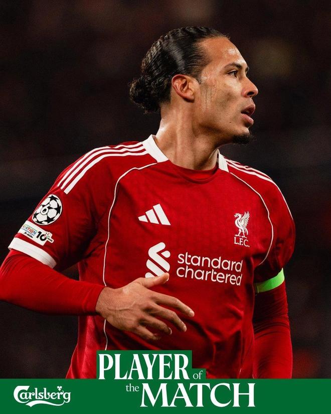 利物浦官方宣布,范戴克当选球队与卡拉巴赫一役队内最佳球员。