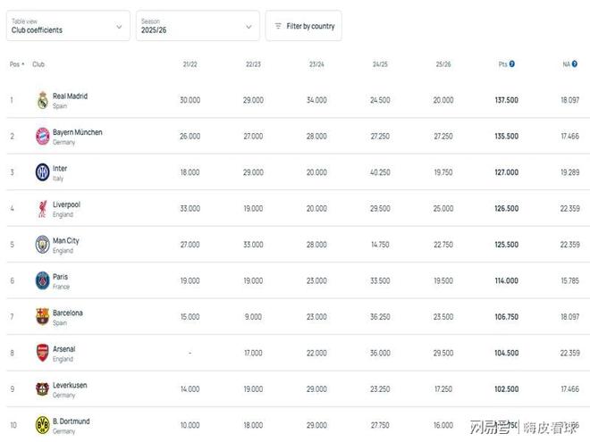 值得一提的是,俱乐部积分是按照最近5年的成绩合计来计算,下赛季开始后,就会移除2021/22赛季的分数,而那个赛季,国际米兰只有18分,减少得并不多,阿森纳由于没有参赛,只有0分,也就是不会减少。因此,在下赛季初,国际米兰或者阿森纳,很有可能成为欧洲排名第一的球队,这样的结果,符合大家的预期吗?