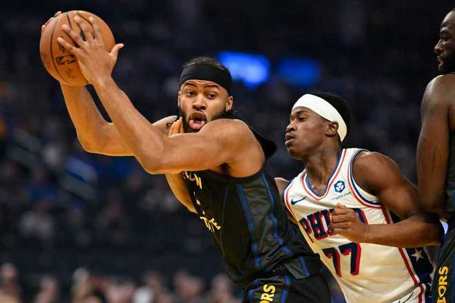 库里大帝缺席!勇士难阻76人8人上双豪取5连胜 探花25+7+7