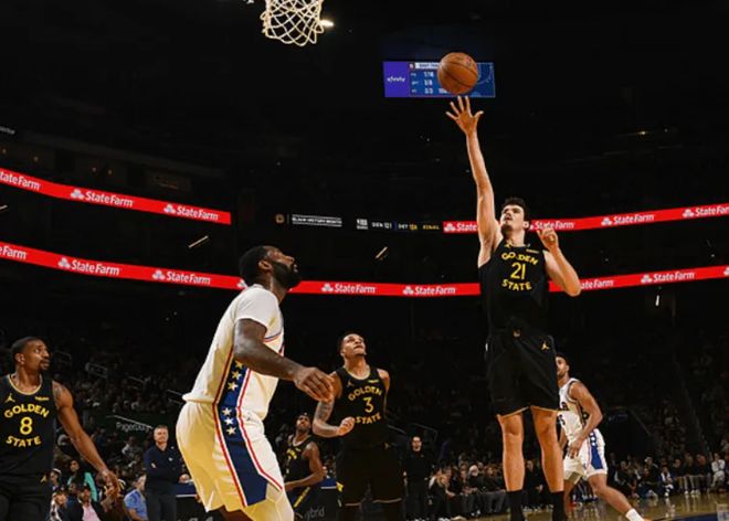 首节比赛,勇士火力全开,全队三分合计14中8、命中率高达57%;76人三分10中3、命中率仅30%。