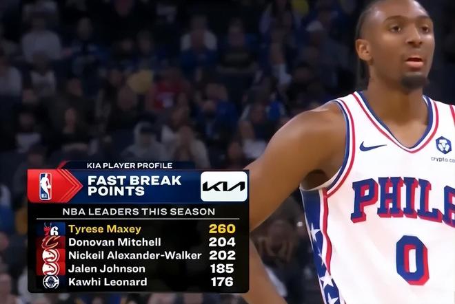 值得一提的是,本赛季快攻得分马克西以260分断崖式领先,高居全联盟第一位。