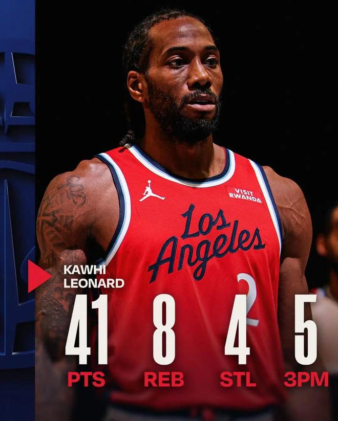 ——对阵森林狼,全场30中14,拿下41分8篮板2助攻4抢断,这是伦纳德生涯第12次40+,也是本赛季的第4次40+,此前三次分别是41分、55分、45分,需要说的是,这三场前后间隔只差了不到半个月