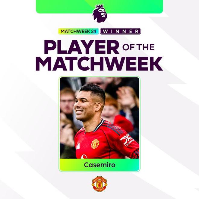 曼联中场卡塞米罗凭借在对阵富勒姆的比赛中的出色表现,被评为英超联赛第24轮最佳球员。