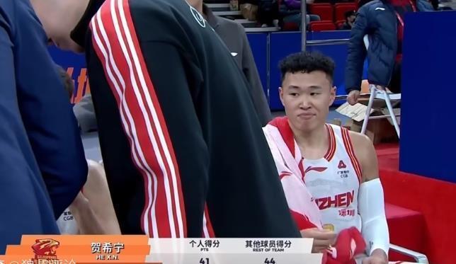昨天晚上的比赛,深圳队在客场以92-101不敌上海队,遭遇两位数的大比分逆转。这场比赛深圳队的贺希宁出战35分30秒,投篮26中14,拿到43分4篮板2助攻3抢断的数据,这不仅是他本赛季得分新高,也是他职业生涯单场得分第二高的数据,同时他还打破了此前郭昊文保持的本赛季国内球员单场得分纪录。