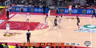 下半场胡明轩重新回来,奎因挨了一帽再送一失误,焦泊乔补篮打进,张镇麟单挑萨姆纳命中翻身后仰,萨姆纳突破制造白边犯规2罚打进,上海3回合攻不进,卢伟光速换上洛夫顿搭档白边,8分01秒,萨姆纳突破再造2+1,一回合后再进超远三分,广东追到13分。
