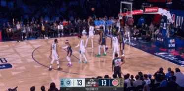接球晃开防守,直奔篮筐爆扣!