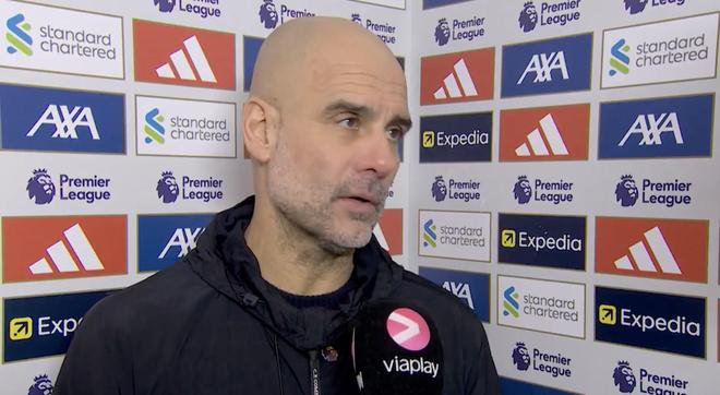 英超第25轮,曼城客场2-1击败利物浦,赛后,曼城主帅瓜迪奥拉接受了Viaplay Fotball的采访。
