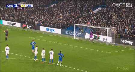 第一分,跟蓝军第二球很类似,利兹联快速突击之后造成了点球机会,恩梅查破门1-2。