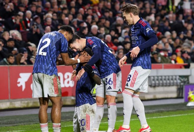 阿森纳下半场踢得更加犀利,特罗萨德和厄德高接连获得射门机会,但没有打进。直到第61分钟,马杜埃凯头球破门,帮助阿森纳取得领先。不过,阿森纳并没能高兴太久。攻势如潮的布伦特福德在第71分钟扳平比分,波特近距离头球顶进。最后阶段双方都有绝杀的机会,只可惜蒂亚戈和马丁内利都没有把握住机会。最终的比分定格为1-1。阿森纳意外丢掉了争冠路上关键的2分。阿森纳只领先身后的曼城4分,争冠悬念变大了。