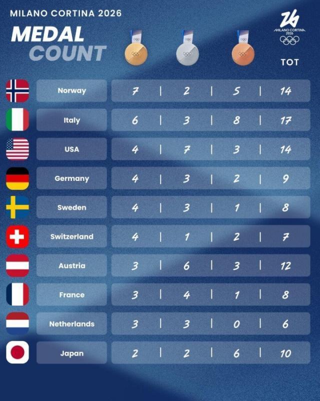 已决出44金!冬奥会奖牌榜:中国2银2铜第16 挪威7金第1意大利6金
