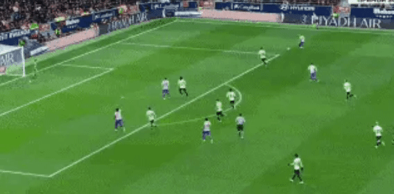 第14分钟,格子的神勇状态,灵巧的身姿展现出来。他得球后在禁区内换到左脚射门,低射,入网。马竞2-0领先!