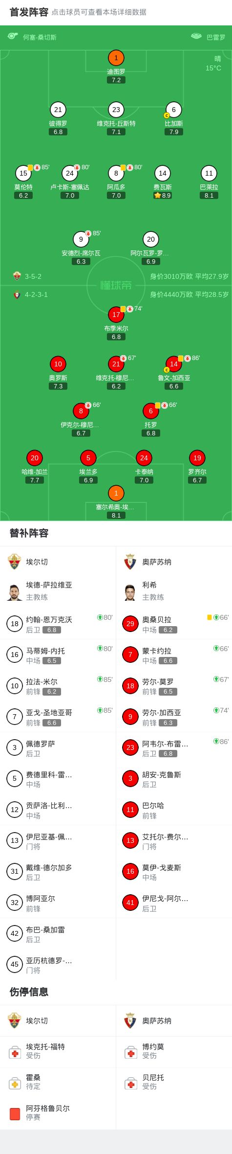 北京时间2月14日西班牙足球甲级联赛 联赛 第24轮,埃尔切主场对阵奥萨苏纳。最终比分埃尔切 0-0 奥萨苏纳。