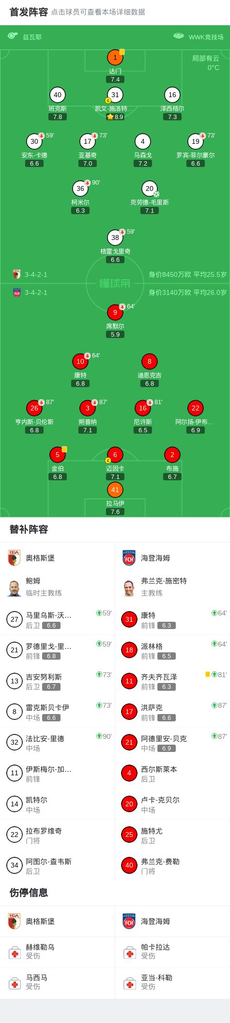 北京时间2月15日德国足球顶级联赛 联赛 第22轮,奥格斯堡主场对阵海登海姆。奥格斯堡克劳德-毛里斯破门。最终比分奥格斯堡 1-0 海登海姆。